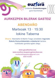 Oharra: Abendaño, S.Martin, Txago zonaldeko Eskola Komunitateetako ordezkariei bertara hurbiltzeko gonbita egiten diegu