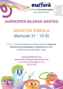 Oharra: Adurtza eskolan burutuko bada ere inguruko Eskola Komunitateetako ordezkariei bertara hurbiltzeko gonbita egiten diegu