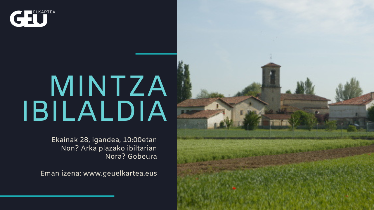 Arka plazako ibiltaria Eduardo dato kalea, 17, VitoriaHilean behin eta igandeetan, mintzalagunok 2 ordutako ibilaldiak egiten ditugu Gasteiz inguruetan. Non? Arka plazako ibiltaritik Nora? Gobeura Noiz? Ekainaren 28an, igandea, 10:00etatik...