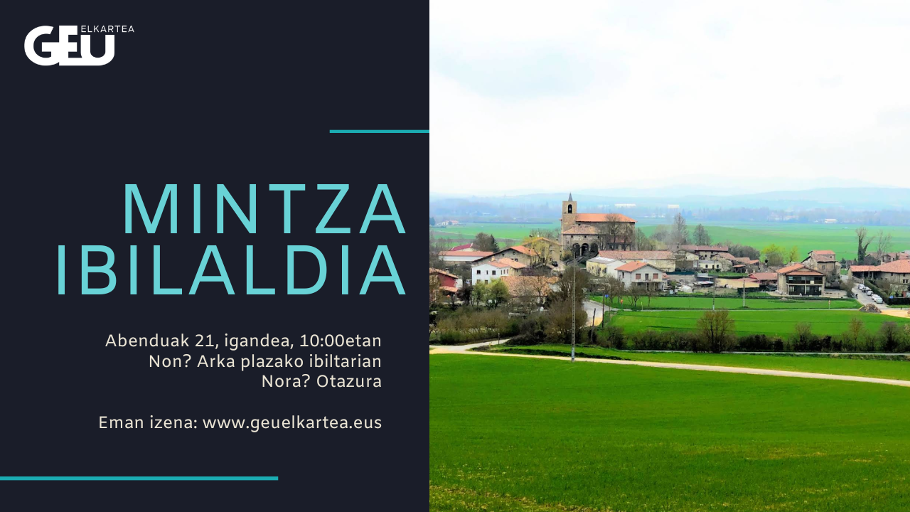 Arka plazako ibiltaria Eduardo dato kalea, 17, VitoriaHilean behin eta igandeetan, mintzalagunok 2 ordutako ibilaldiak egiten ditugu Gasteiz inguruetan. Non? Arka plazako ibiltaritik Nora? Otazura Noiz? Abenduaren 21ean, igandea, 10:00etatik...